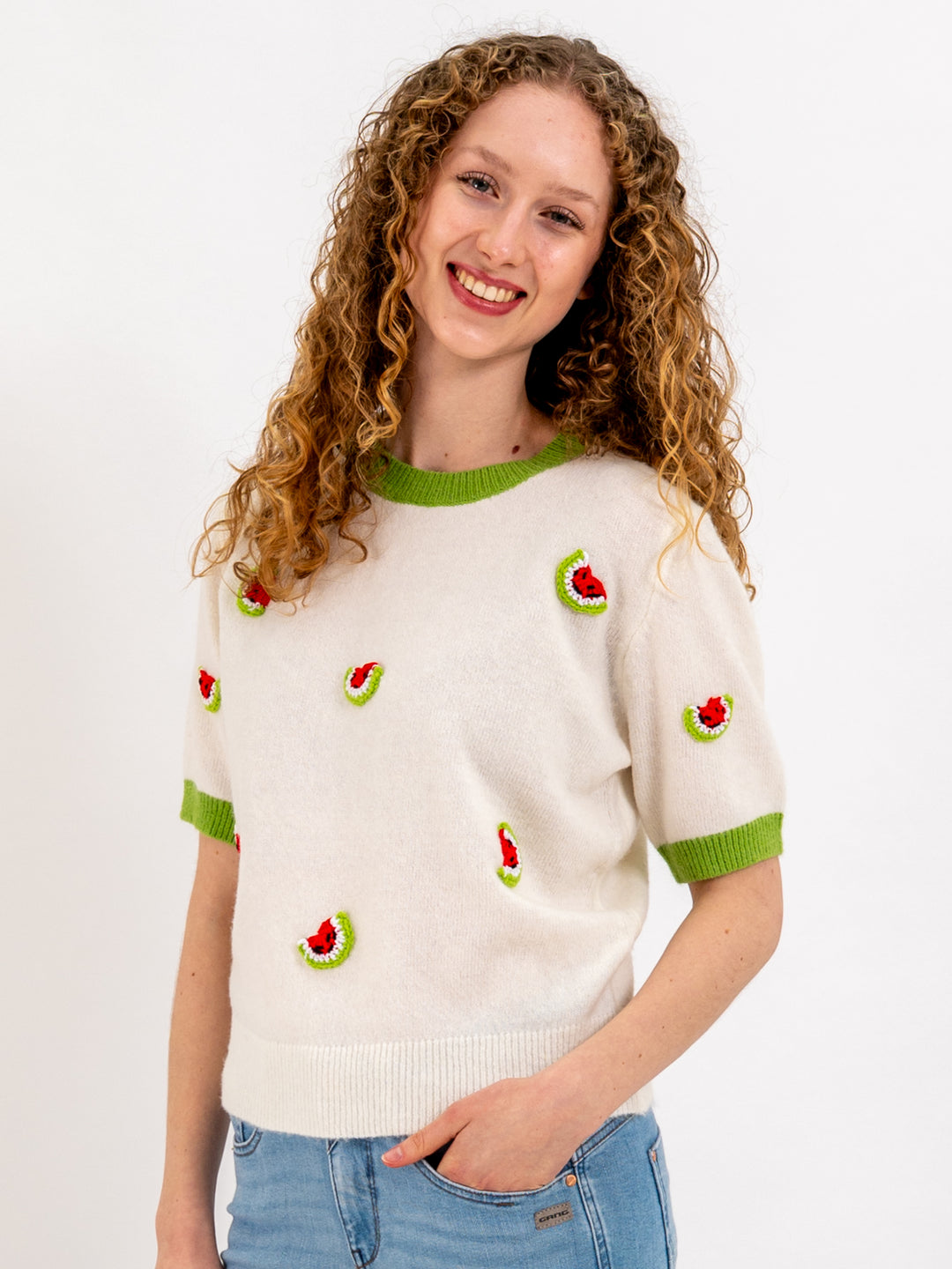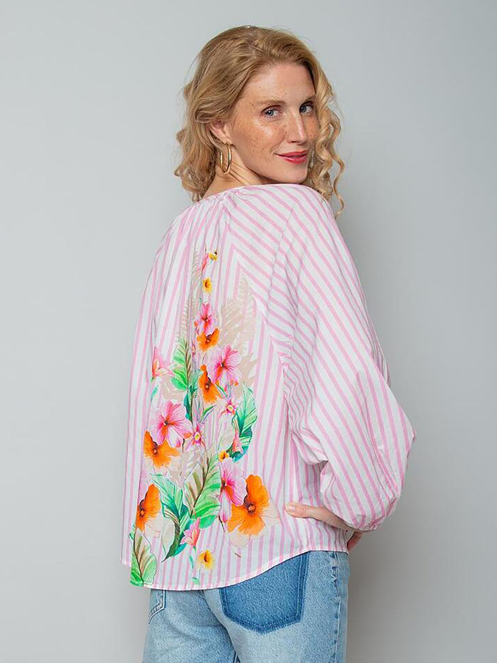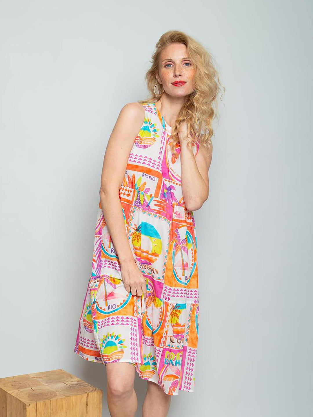 Verspielte Volant-Ärmel treffen auf einen außergewöhnlichen Mix aus Karos, Palmblättern und Vogelmotiven.