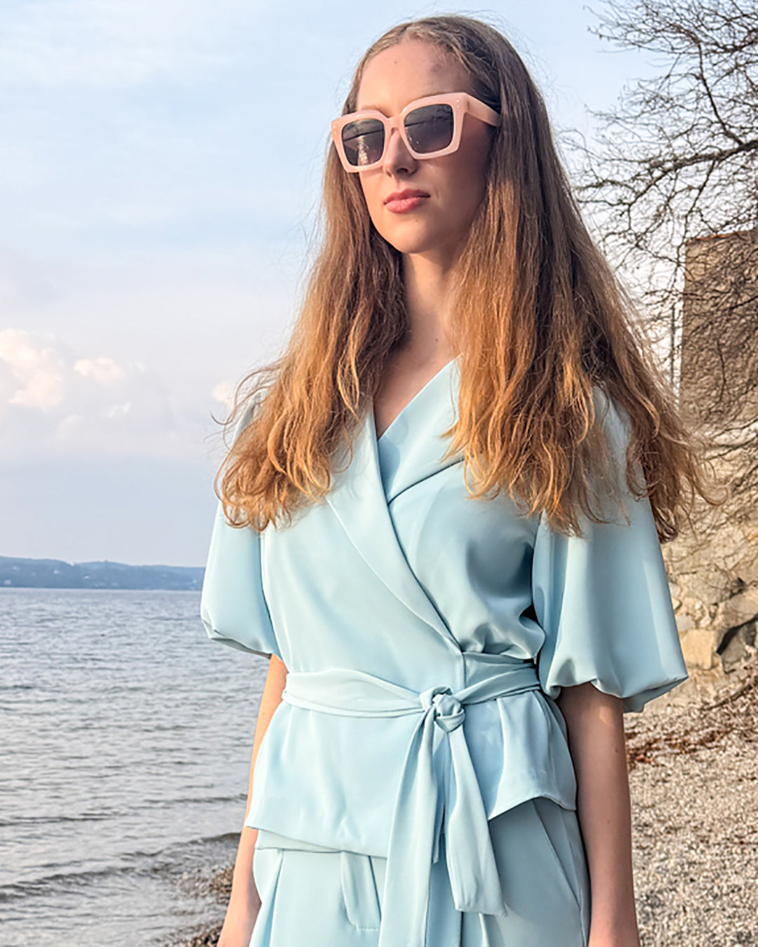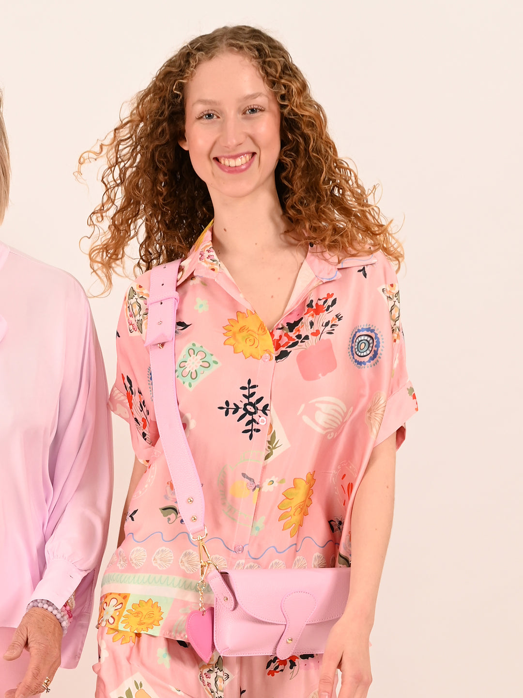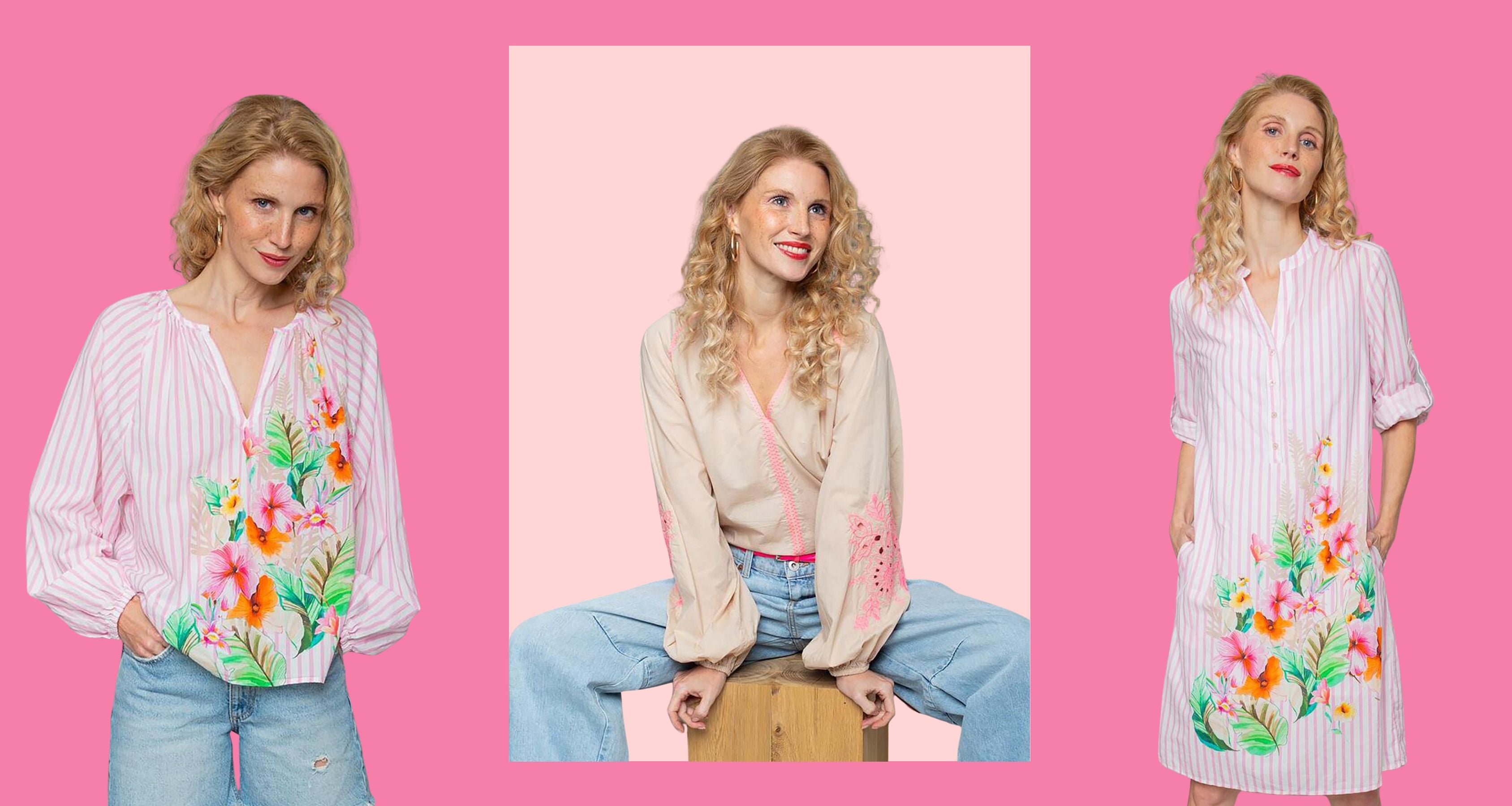 Zarte Rosa- und Pinktöne verleihen dem Look eine feminine Frische.