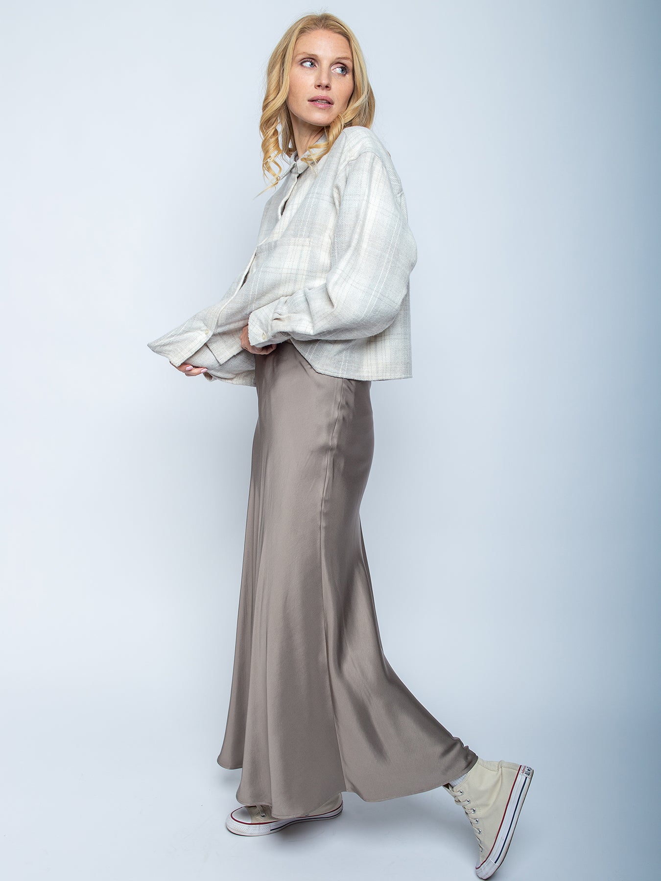 Emily van den Bergh Maxirock Taupe erhältlich bei Modafein.