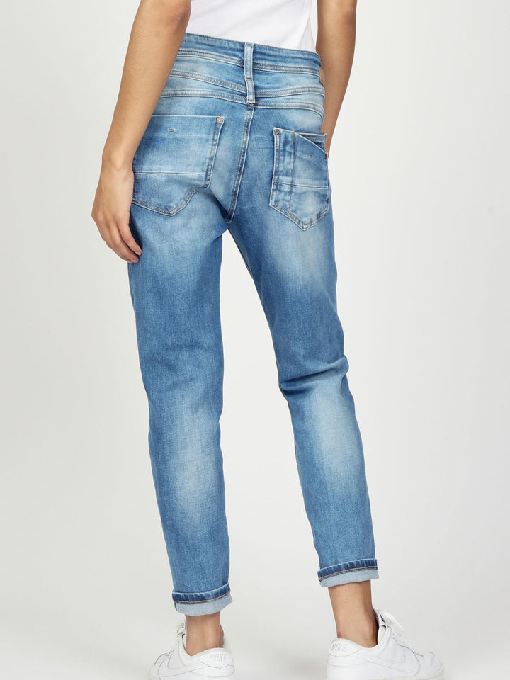 Unsere 94AMELIE überzeugt im relaxten 5-Pocket Style mit modisch verkürzter Beinlänge. Bequeme Weite an Hüfte und Oberschenkel sorgt für zusätzlichen Tragekomfort und kann sowohl lässig auf der Hüfte als auch eng, auf Passform getragen werden. Die doppelte Passe und die doppelte, rechte Gesäßtasche sind charakteristisch für dieses Modell.