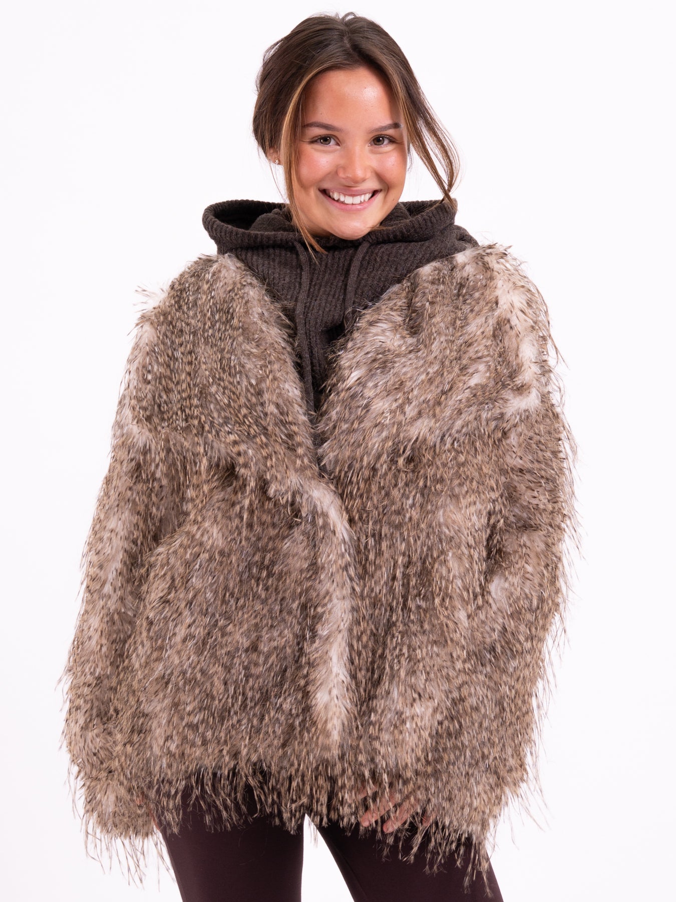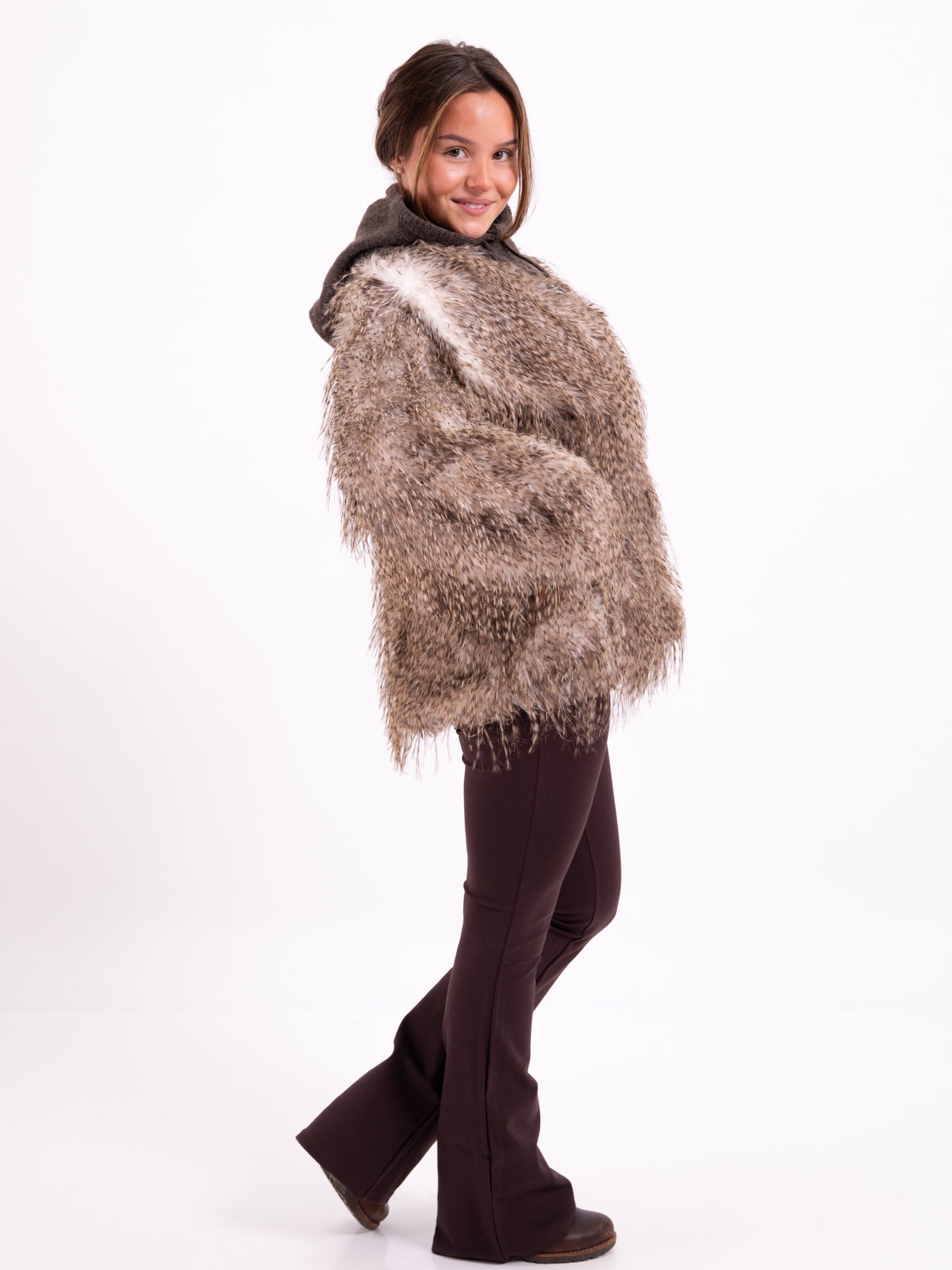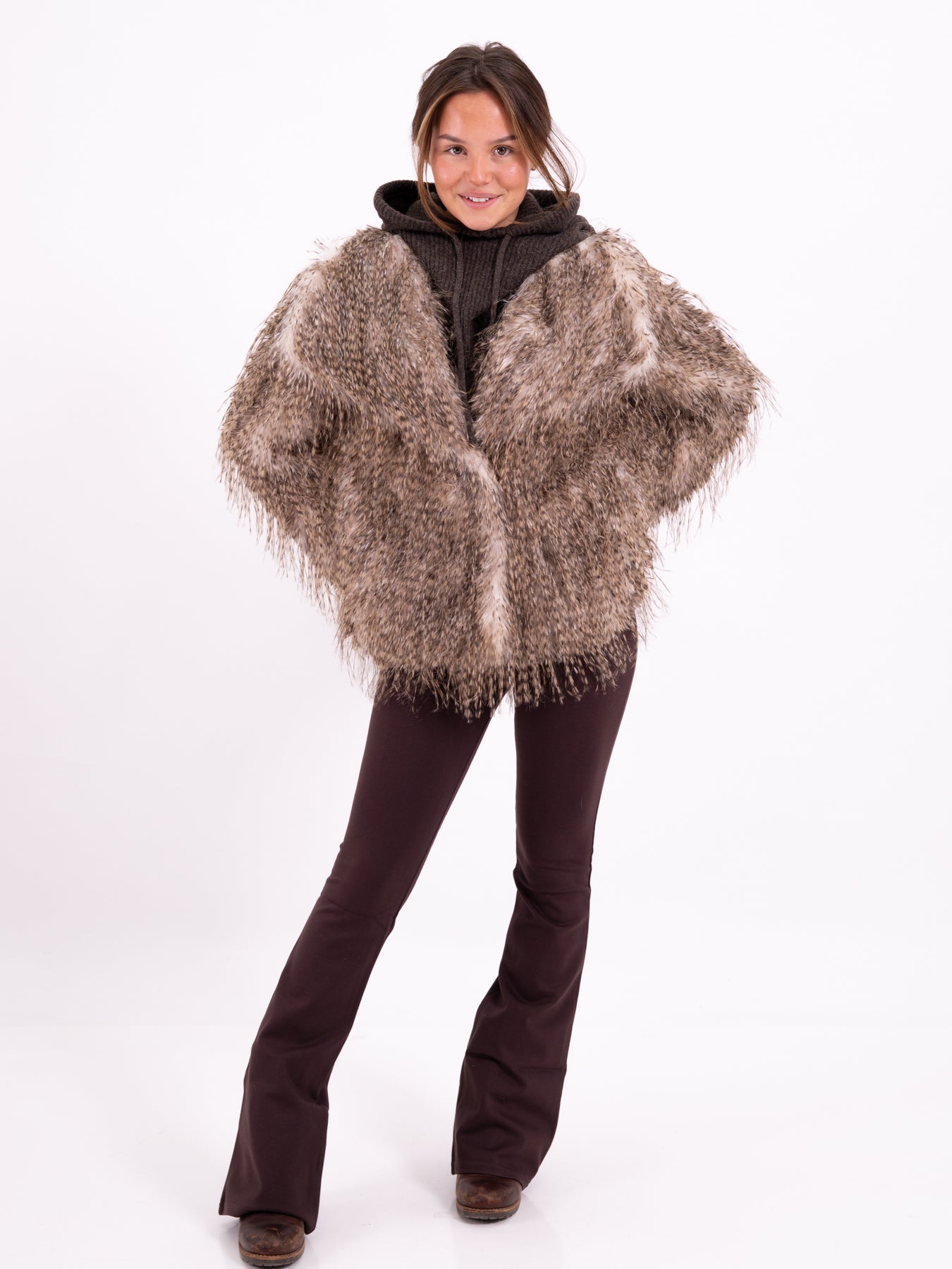Die Kunstfelljacke Braun ist bei Modafein erhältlich.