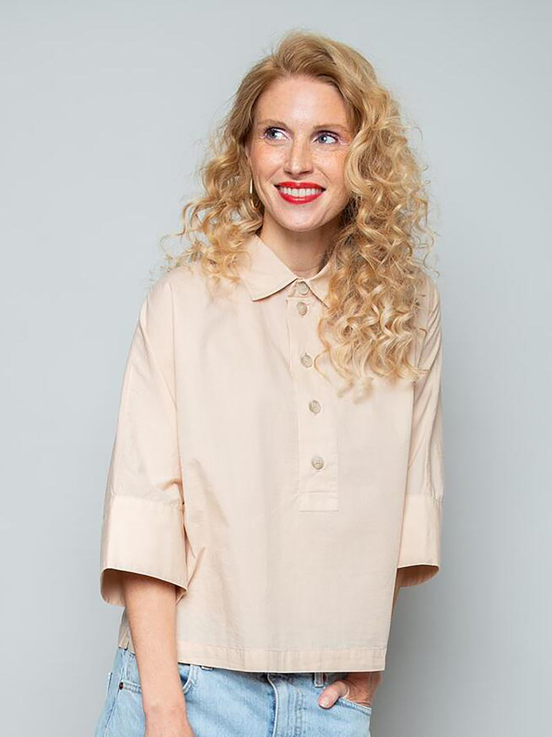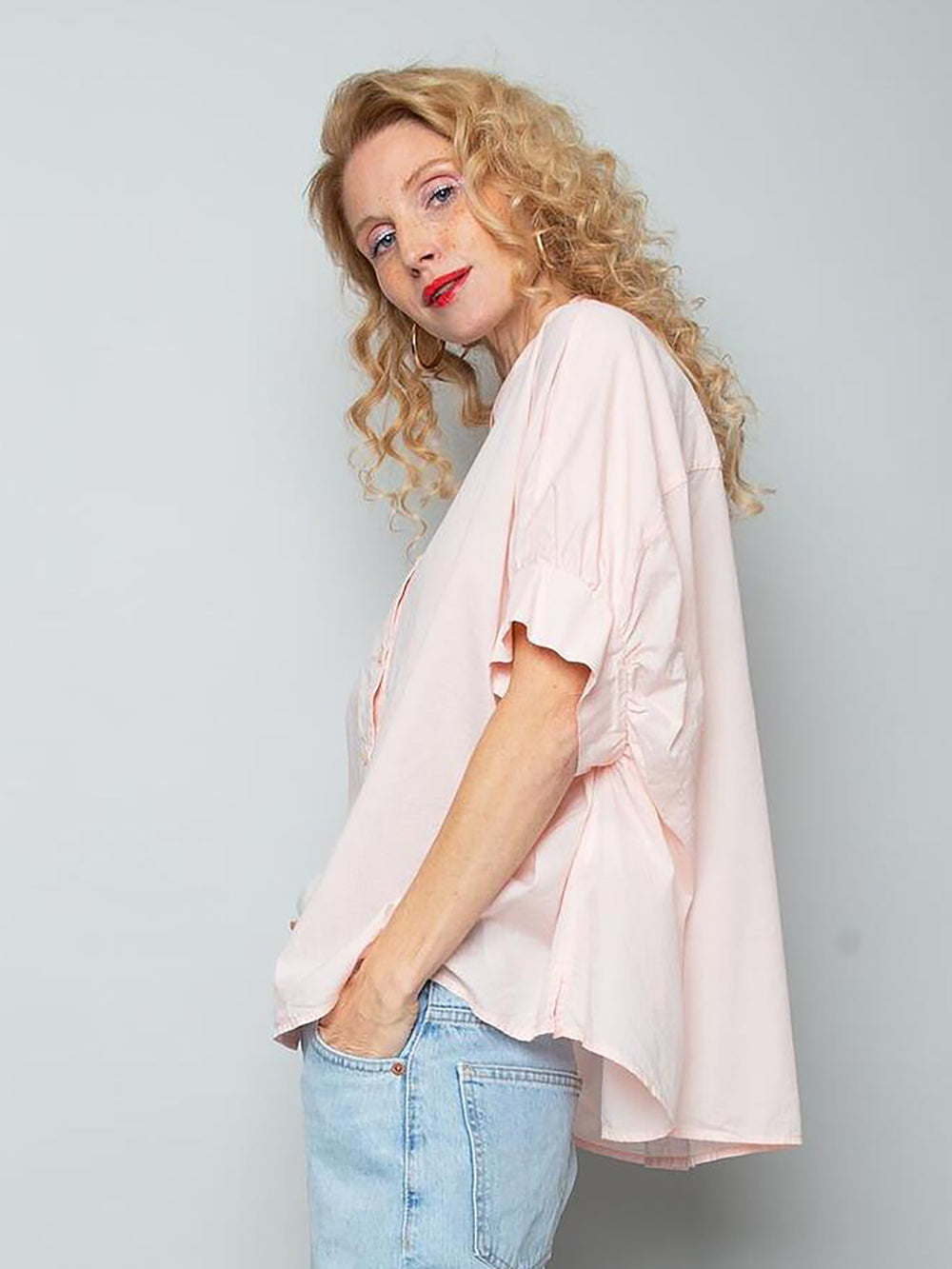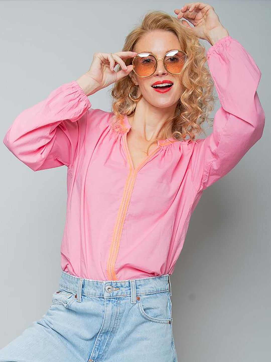 Schlupfbluse V-Ausschnitt Orange Pink Beach