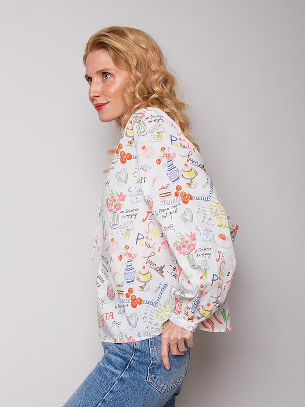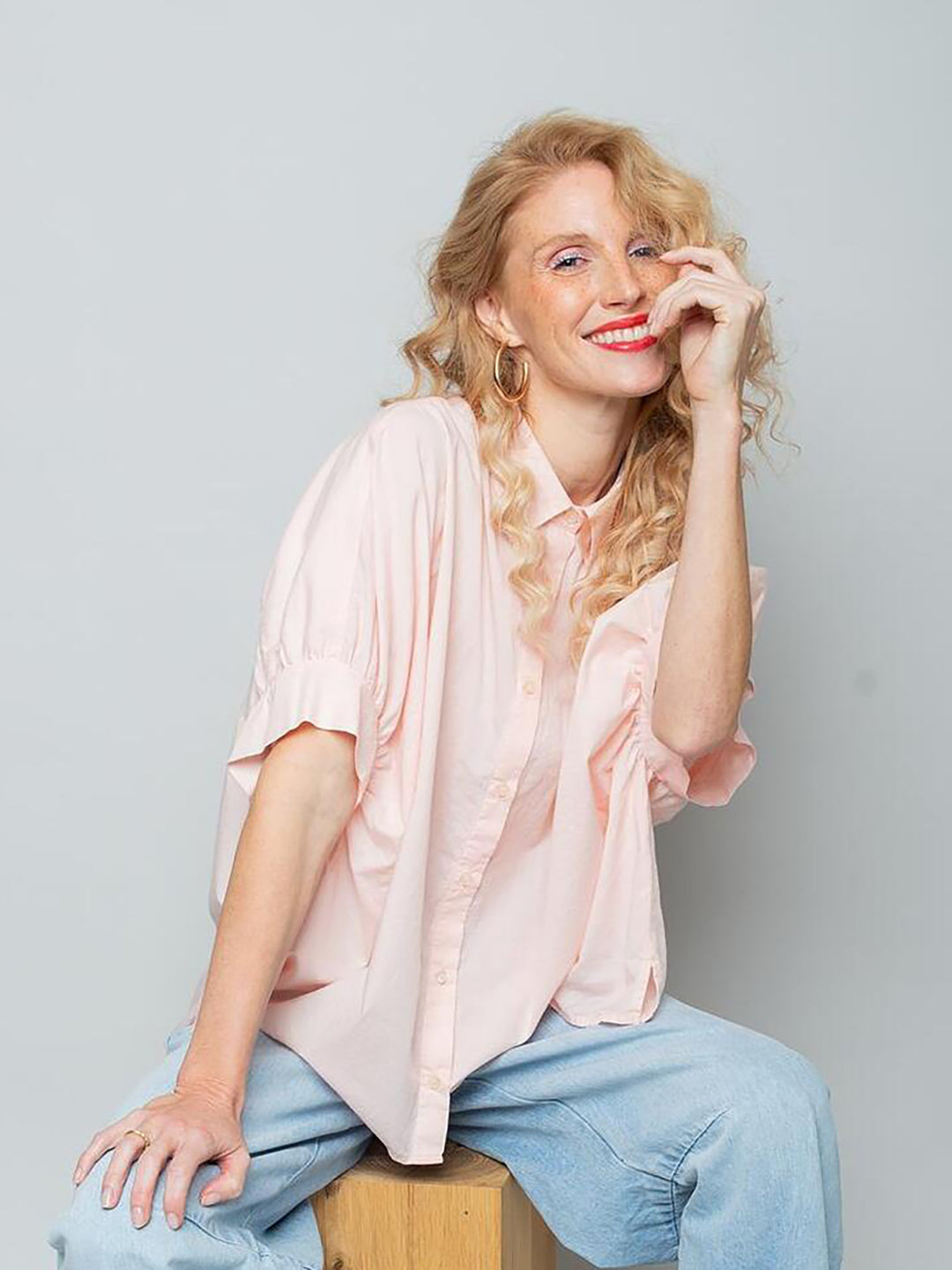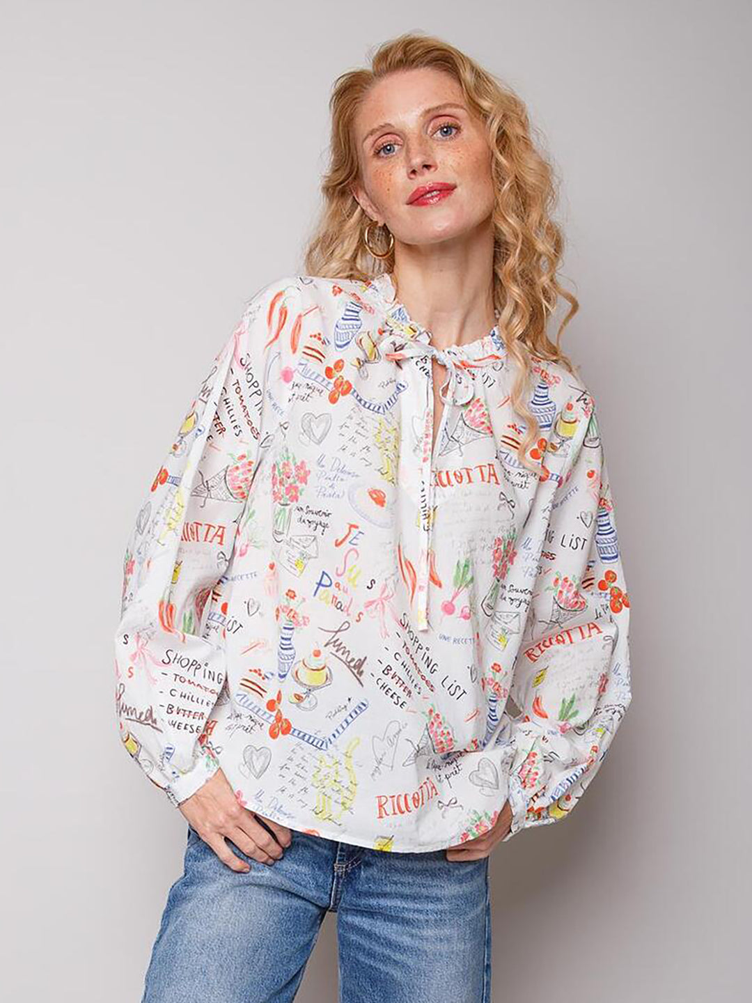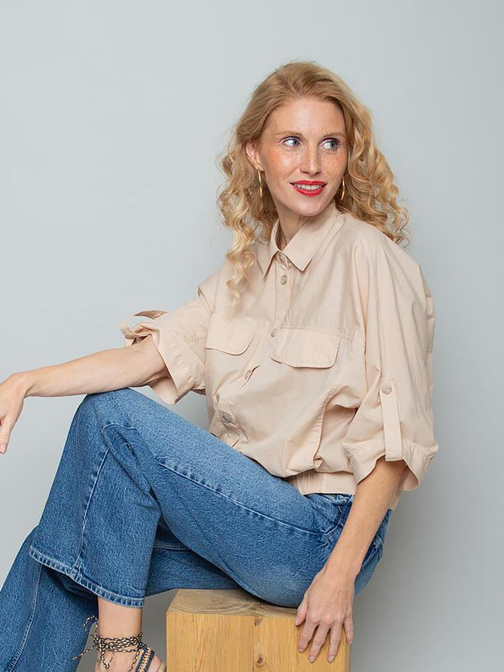 Schlupfbluse V-Ausschnitt Orange Pink Beach