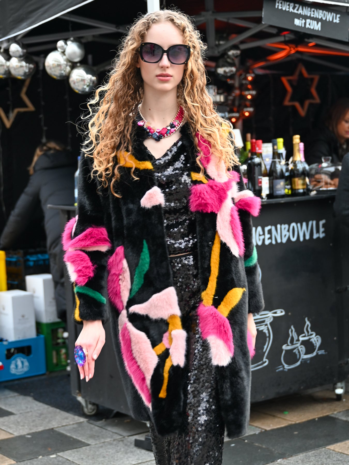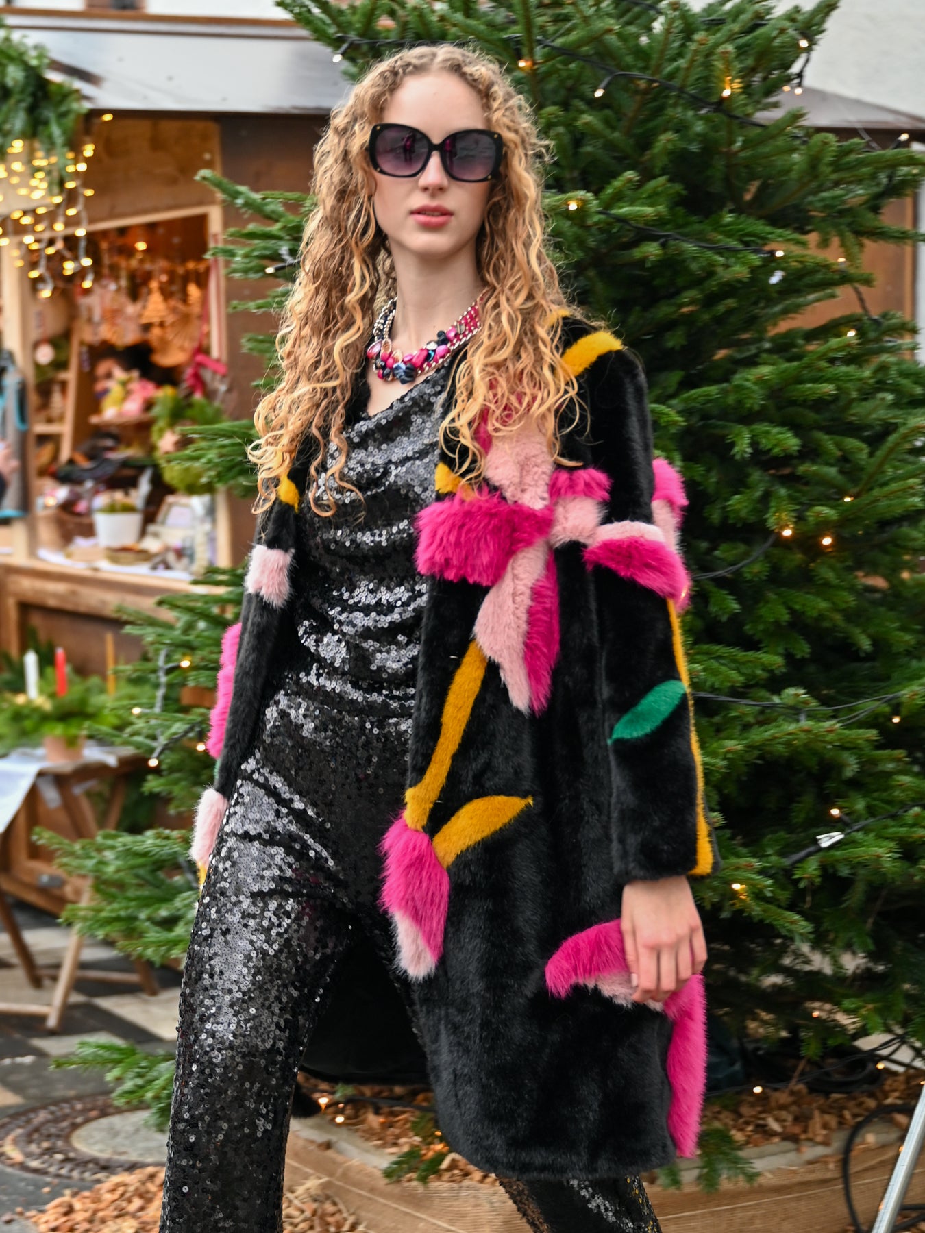 Der Kunstfellmantel Flowers Black ist bei Modafein erhältlich.