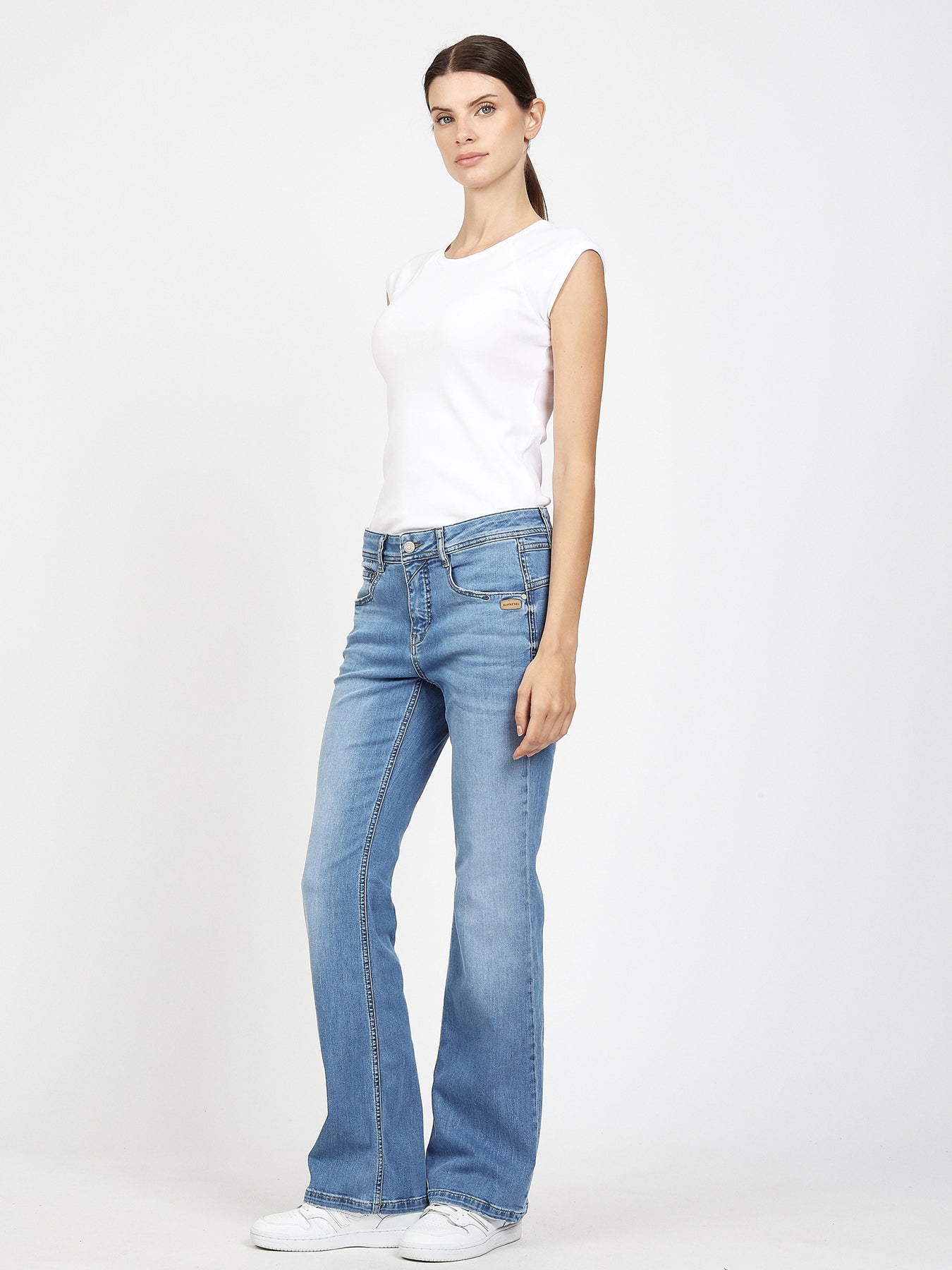 Die Jeans Amelie Flared Fit Midblue Base Use ist bei Modafein erhältlich.